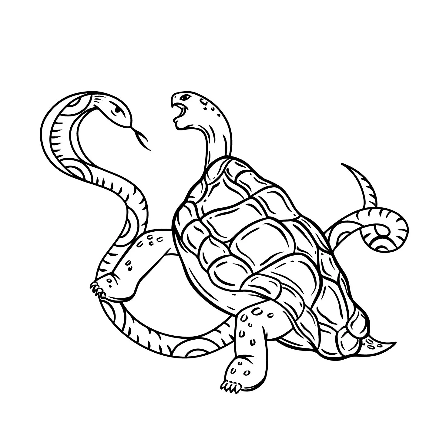 (Above) Sloe Gin illustration depicting a tortoise fighting a snake.